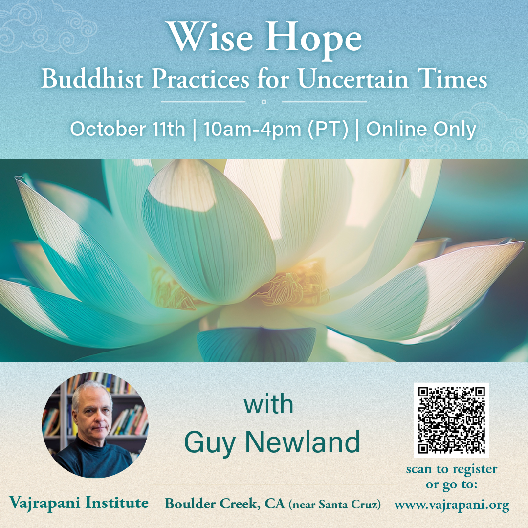 Vajrapani Institute may publish recorded sessions in the public domain (e.g., on YouTube). By registering for this event, you are agreeing to give your consent to this process. To protect your privacy, we recommend being conscious about any personal information you share during the sessions. To further enhance anonymity, you may want to consider turning off video or naming yourself using abbreviations.